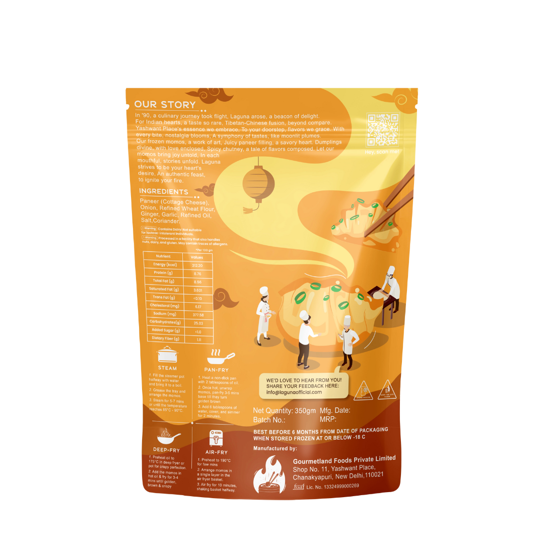 Treat yourself to the creamy goodness of Laguna’s Paneer Momos, now in a convenient pack of 2. Soft dough filled with flavorful paneer—perfect for a quick snack or light meal!